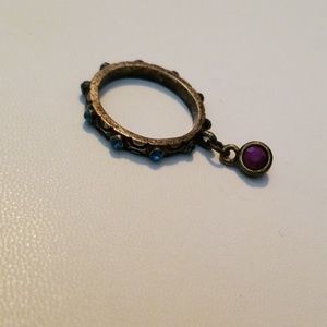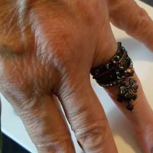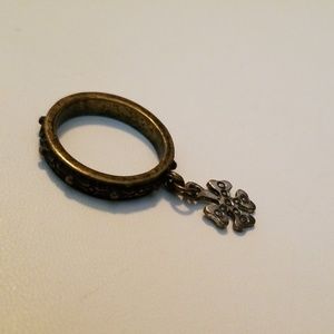 4 mixed metal and stone rings, three with dangling charms. Fun and trendy ri g stack. Size 7.