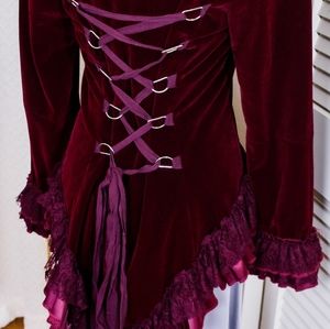 This vintage steampunk style coat is such a fun find. Very unique and fun style and meant for someone who loves to be different. This jacket is in perfect condition and ready to be worn! It's velvet material and shiny buttons makes it perfect for photoshoots. It's truly a statement piece!