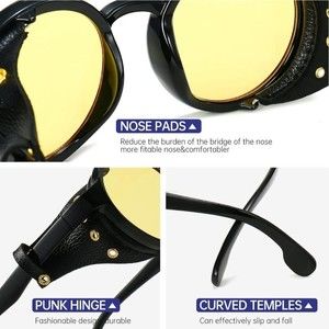 • STEAMPUNK Design - Retro steampunk style round sun glasses designed with Leatherwear side shield for women men. Vintage cool sunglasses designer make you look awesome and most fashionable person in the world.