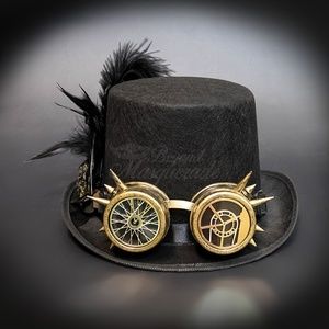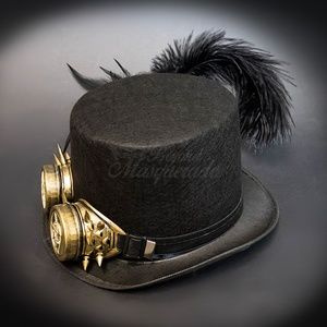 Steampunk Top Hat Costume Goggle Mask Feathers