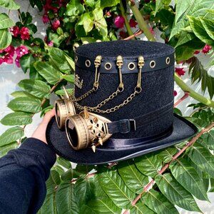 Steampunk Top Hat Metallic Scientist Time Traveler Halloween Costume Cosplay Hat