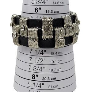 Steampunk Wide Black Leather Bracelet Studded Rhinestone Streetwear Adjustable