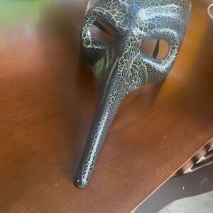 Unique long nose mask featuring a crackle pattern. Perfect for costumes or home decor.
