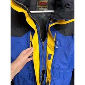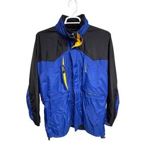 Stearns Dry Wear Jacket Black Blue Yellow Size Large Fishing, Boating Hiking Excellent Condition.