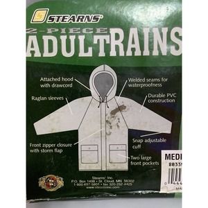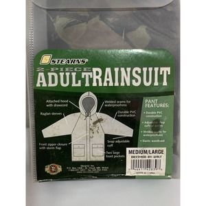 Stearns Men’s Old New Stock PVC Nylon 2 Piece Waterproof Camo Rain Suit Size ML. Box has been opened but suit has never been taken out of box. See photo.