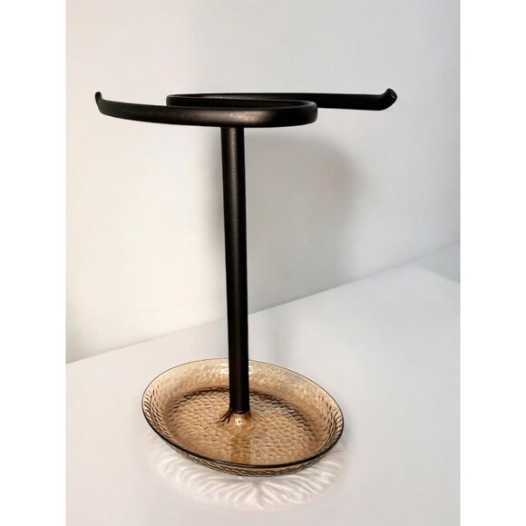 Efficiently organize towels, wash cloths, jewelry or accessories with this elegantly designed holder. The hammered plastic base complements the sturdy metal frame for a refined finish.