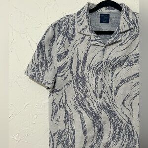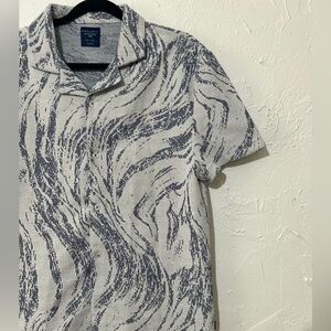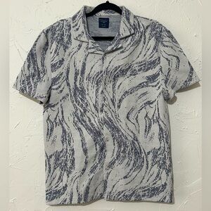Steel & Jelly Men’s Pinner Wave Effect Short Sleeve Blue Shirt Sz Medium