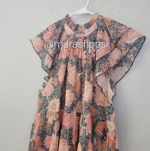 A feminine and charming choice for sunny days! This Steele Lori Dress constructs from mid-weight cotton and adorned with an intricate floral print inspired by the label’s native Australia. It features a ruffled neckline, flutter sleeves with buttons on the back. A flouncy tiered silhouette adds to the finish of this intricate dress.