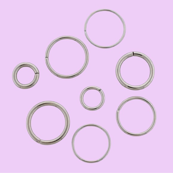 16G High polished annealed seamless steel rings are perfect for nose, ear, lip, and eyebrow piercings