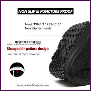 • Fabric & Construction: Features a waterproof mesh upper, a European standard steel toe cap, a puncture-proof Kevlar midsole, and a high-traction, non-slip rubber outsole.