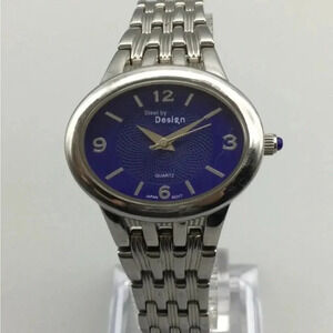 Steel by Design Watch Women 30mm Silver Tone Oval Blue Dial