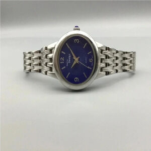 NWOTs Steel by Design Watch Women 30mm Silver Tone Oval Blue Dial