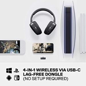 The Arctis 1 Wireless is a gaming-grade wireless headset designed for PC, PS4/5, Switch, and Android thanks to an innovative USB-C dongle design, making it perfect for gaming at home or on the go. Its sleek and lightweight design includes the same high quality speaker drivers and microphone tech as the critically acclaimed Arctis 7, so you can bring the award-winning performance of Arctis anywhere. Named Best Wireless Headset for Nintendo Switch by Engaged, Best Overall Wireless Gaming Headset by Wired, Best Gaming Headset - PC Gamer February 2020.