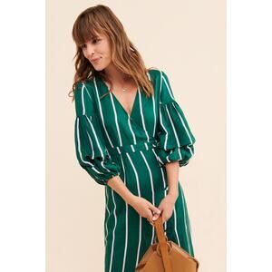 Steele Anthropologie Meyer Stripe Wrap Linen Midi Dress Women's Small Petite