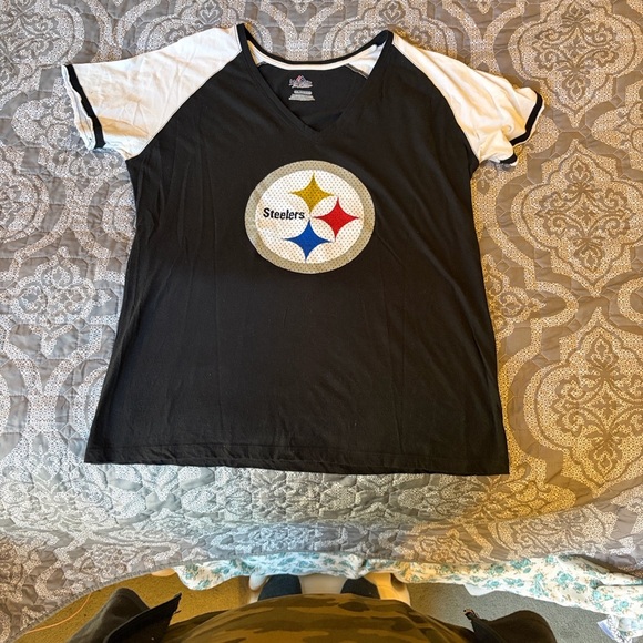 Steelers Black and White V-Neck T-Shirt Women’s XXL -Polanski