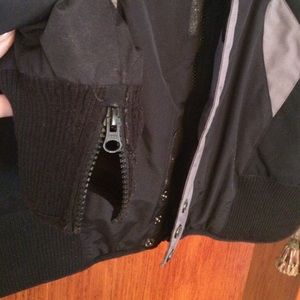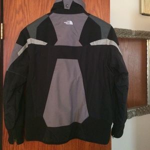 This technical snow sports jackets provides exceptional synthetic down insulation at the body and sleeves and a tapered trim fit. Gentle worn. There is no built in hood in the collar of this jacket.