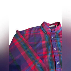 Steeple Chase Vintage Retro Men’s Long Sleeve Button Down M, Purple/Red Plaid