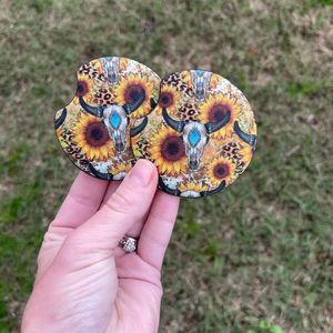 Steer Head Sunflower Car Coaster Set | Car Accessories