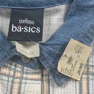 Stefano Basics Top Womens Medium White Plaid Pearl Snap Western Sleeveless NWT