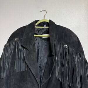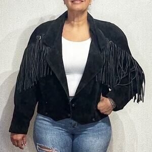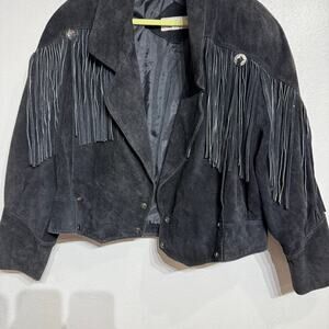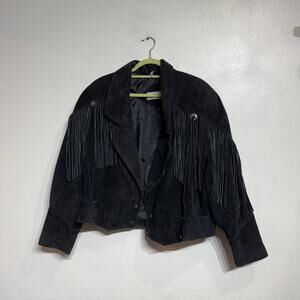 Stefano Black Suede Leather Cropped Vintage Fringe Jacket Sz L