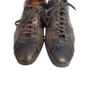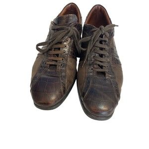 FEATURES: Lace up closure, two tone brown and croc print, shock absorbing rubber sole, leather upper. Great shoe! Made in Italy.