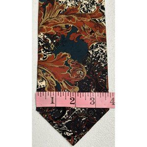 A floral paisley type of abstract print on a black background this silk tie is handmade in Italy.
