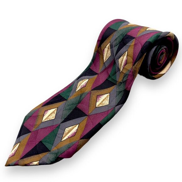 Stefano Milano Mens Silk Dress Tie Made in Italy Geometric Design 60" 3.75"