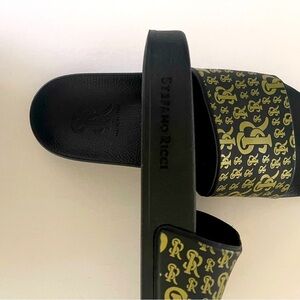 Stefano Ricci Black and Gold Patterned Slide Sandals