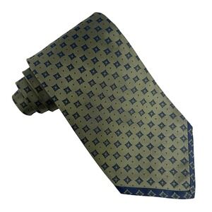 Stefano Ricci Mens Tie Geometric Floral Olive/Navy Satin Silk 4" (W) 61" (L) euc