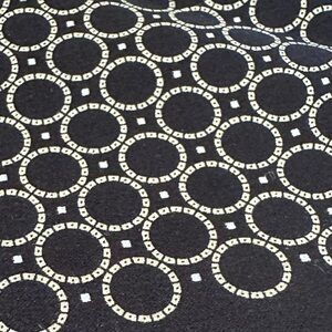 Luxury Stefano Ricci silk pocket square in a timeless black background with white geometric ring pattern.