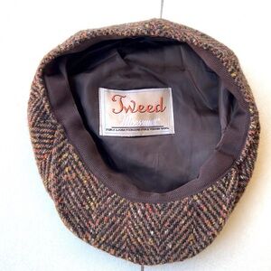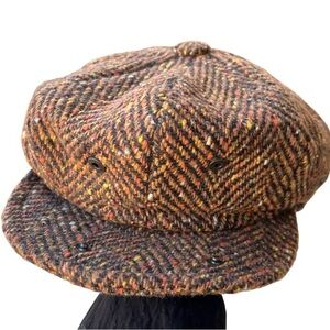 Chic brown herringbone cap by Tweeds. Ideal for a vintage-inspired look.
