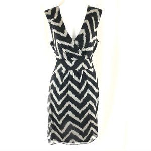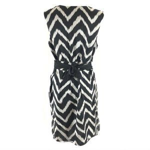 Steffen Schraut A Line Dress Silk Chevron Striped Gray Black Tie Waist Size 36