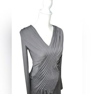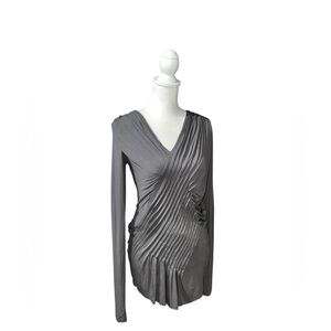 Steffen Schraut Long Sleeve Ruched Asymmetrical Gray Long Sleeve Blouse