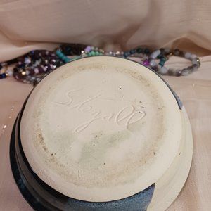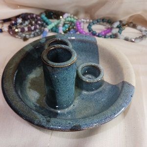 Stegall pottery flower frog excellent condition blue glaze 3 flower holders . 6" x 6" x 3"