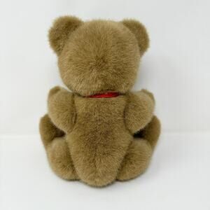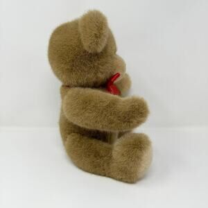 Steiff Petsy Teddy Bear 14" Plush Caramel Stuffed Animal Button in Ear 012174. This adorable caramel brown jointed Steiff Petsy Teddy Bear has a traditional feel. He wears a red satin ribbon around his neck. He has beaded eyes and a stitched nose and mouth.