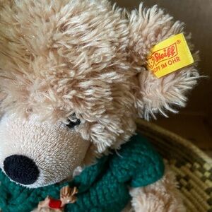 This Steiff Teddy Bear With Winter Sweater is ready for Christmas! Adorable little bear. Has Steiff tag attached to ear #111327.