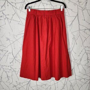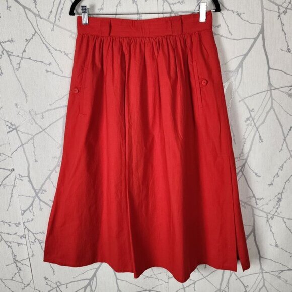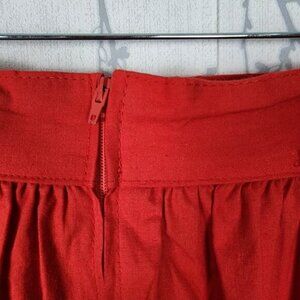 Steilmann VTG Red Pleated 100% Cotton Flowy Side Slit Midi Skirt