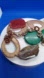 Elevate your style with this stunning multicolor geometric statement necklace. Featuring bold red, green, and gold tones, this piece is perfect for adding a pop of color to any outfit. Red faceted gemstone (quartz- perhaps Chalcedony) and Hawk's or Tiger's eye stones both register on Presidium. Green are both faux malachite resin. Stones and copper plating on necklace show some wear from being stored.