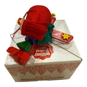 NWT - The Vintage Steinbach Pilot Santa In Flying Plane Ornament is a small, multicolor wooden ornament handmade in Germany. This unique ornament features a Pilot Santa Claus character flying an airplane, perfect for Christmas celebrations. Part of the Steinbach franchise, this vintage collectible is a charming addition to any holiday and seasonal decor collection. Original Steinbach tag attached with Steinbach box. The detail of Steinbach craftsmanship makes this a real keepsake.
