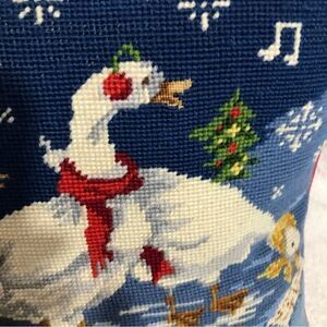 Steinway Vtg Christmas Needlepoint Geese Throw Pillow
