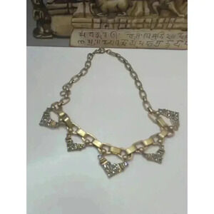Features: Gold-tone, Embellished with gemstones, Link chain, Choker, Statement piece