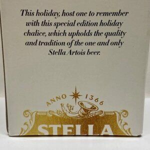 The Special Holiday Edition Stella Artois Chalice is a highly collectible vintage beer glass featuring the iconic tulip glass design. This limited edition chalice is adorned with the Stella Artois brand logo, making it a coveted piece for beer enthusiasts and collectors alike. Perfect for enjoying your favorite beer in style or adding to a collection of breweriana, this new in box chalice is a must-have for any beer aficionado.