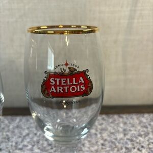 Stella Artois Chalice Beer Glasses Gold Rim 33cl Belgium Script Set Of 2