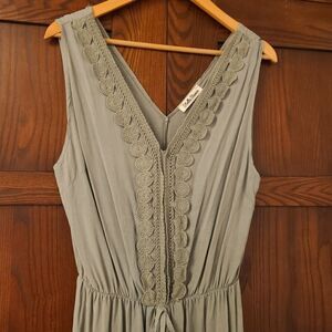 Gorgeous Stella Bianca Romper with crochet detail in sage green. Elastic waist. Pull on style. Super soft viscose material. Made in Italy. Flexible fit, tagged S/M.