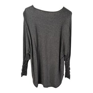 Stella Carakasi Cashmere blend Charcoal grey sequined long sleeve sweater S/M EUC smoke free dog friendly home pullover classic designer luxury timeless cozy comfort casual trendy