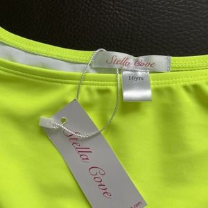 NWT Stella Cove neon yellow 2 piece set swimsuit bikini size 16y covered shoulders