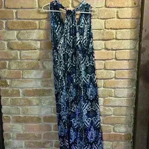 Stella Cruz Blue Patterned Sleeveless Maxi Dress Size Large. This stunning maxi dress is in LIKE NEW condition, no snags, no tears and no stains. Retail price was $85 but we can let you sneak away with this one for just $30!!
