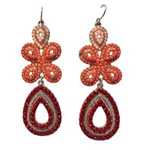 Stella & Dot Acrylic Bead Capri Chandelier Teardrop Hoop Earrings Red Coral