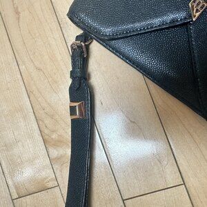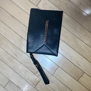 Stella & Dot Black Pebbled Leather Envelope Clutch w Rose Gold Accents Wallet