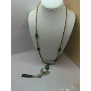 This stylish Stella & Dot necklace features a beautiful blue hue with pendant details. The convertible design allows for versatile wearing options. Perfectly fits a bohemian style.